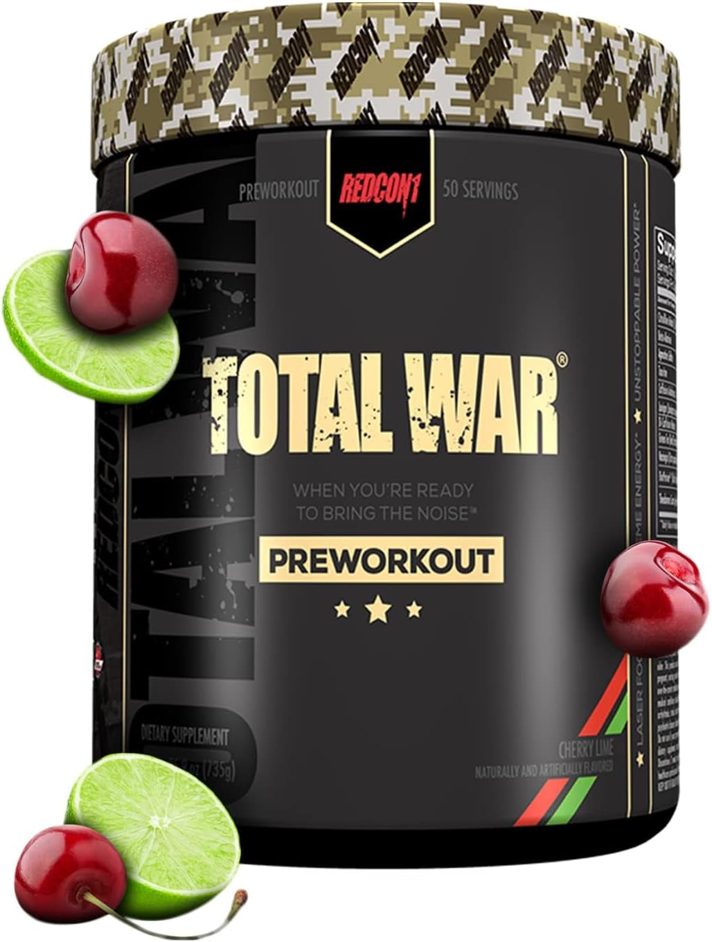 REDCON1 Total War Pre Workout Powder, Cherry Lime - Beta Alanine + Citrulline Malate Vegan & Keto Friendly Preworkout for Men & Women with 320Mg of Caffeine (50 Servings)