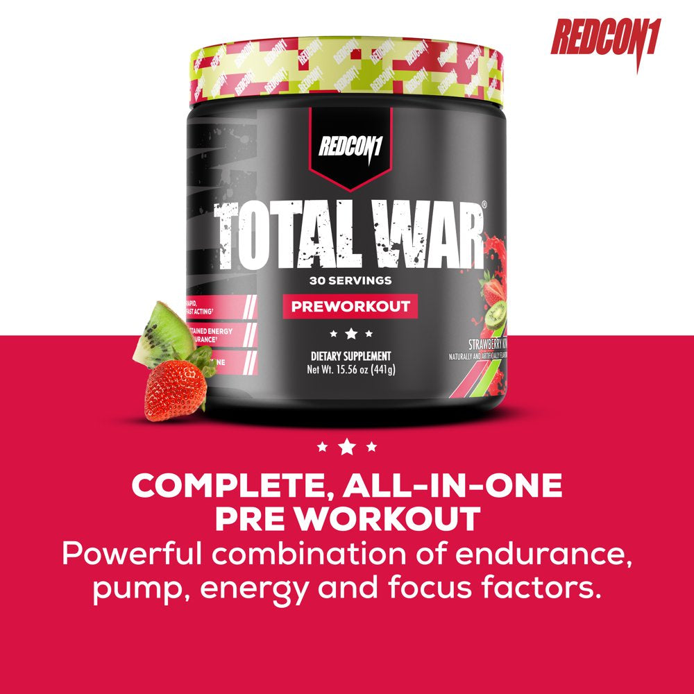 Redcon1 Total War Pre-Workout Powder, Strawberry Kiwi, 30 Servings - Strawberry Kiwi is backordered and will ship as soon as it is back in stock.