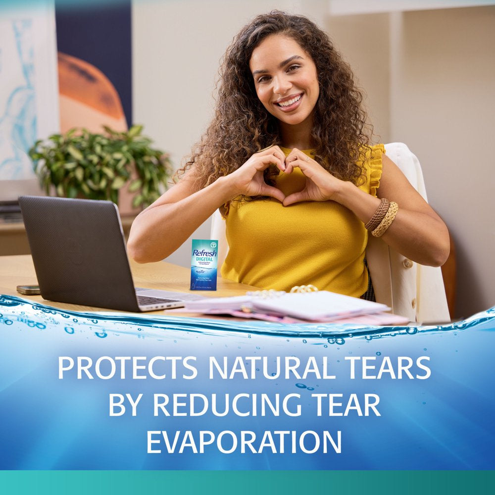 Surf, scroll, and soothe your dry, irritated eyes with REFRESH DIGITAL Lubricant Eye Drops. We love using our digital devices, but are our eyes on the same page? Staring at screens means we may blink less often and less completely, causing our eyes to miss out on much-needed hydration—which may lead to dryness, irritation, and discomfort. REFRESH DIGITAL Lubricant Eye Drops acts fast to relieve, soothe, and provide comfort. It also features HydroCell technology which enables hydration and maintains the volume of cells on the eyes' surface. Let's make caring for our eyes top of mind in today's digital world. REBOOT. RELIEVE. REFRESH. TRUST YOUR EYES TO REFRESH—#1 doctor recommended with over 30 years of experience.* (*REFRESH Family of Products, Ipsos Healthcare, 2021 REFRESH ECP Recommendation Survey.)