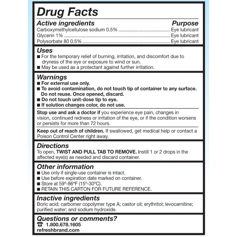 Warnings: For external use only. To avoid contamination, do not touch tip of container to any surface. Do not reuse. Once opened, discard. Do not touch unit-dose tip to eye. If solution changes color, do not use. Stop use and ask a doctor if you experience eye pain, changes in vision, continued redness or irritation of the eye, or if the condition worsens or persists for more than 72 hours. Keep out of reach of children. If swallowed, get medical help or contact a Poison Control Center right away. Other Information: Use only if single-use container is intact. Use before expiration date marked on container. Store at 59°-86°F (15°-30°C).