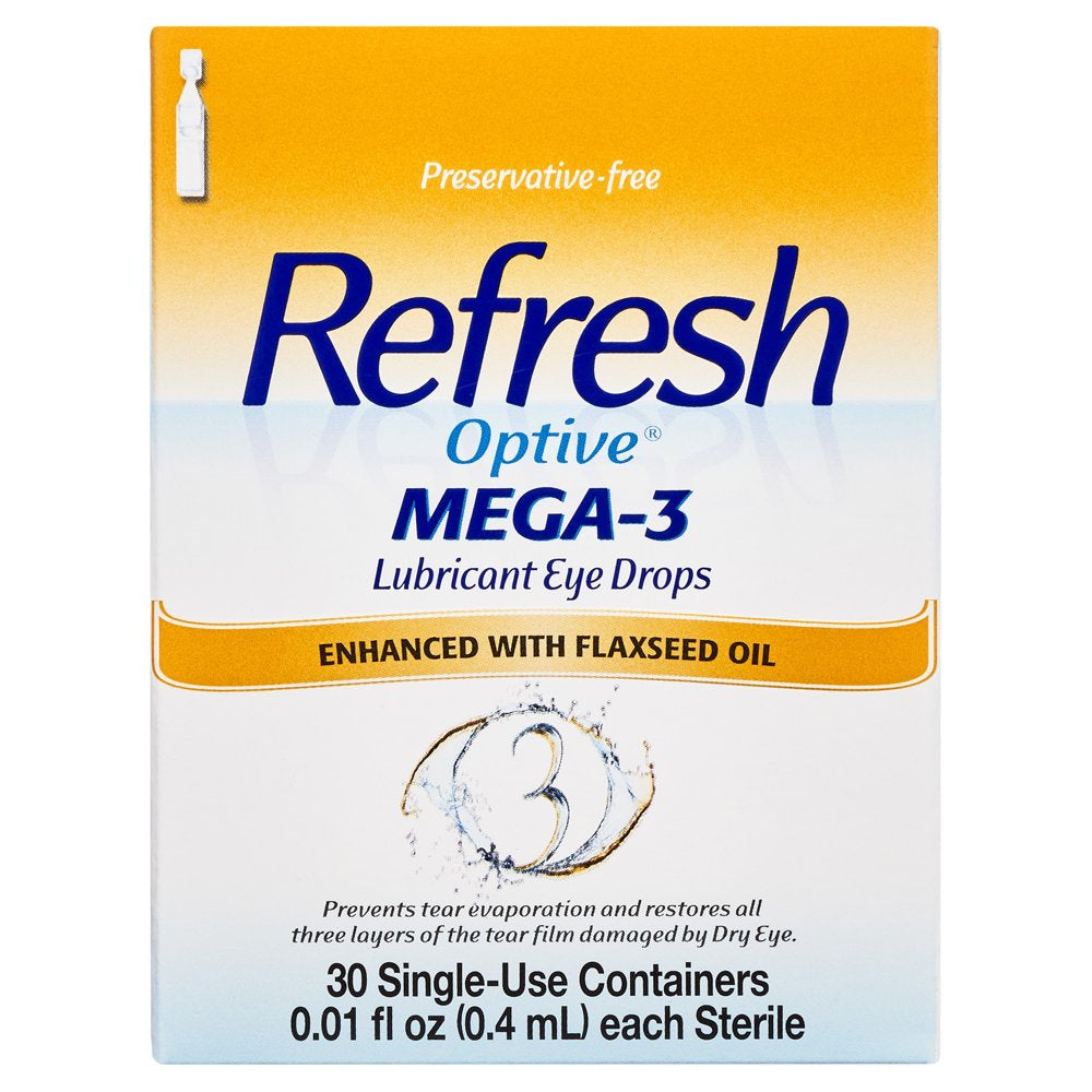 Refresh Optive Mega-3 Lubricant Eye Drops Preservative-Free Tears, 0.4 Ml, 30 Count