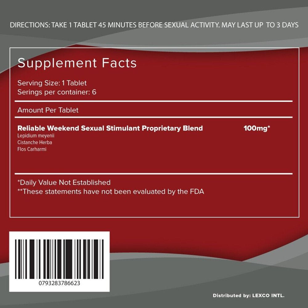 Reliable Weekend Extreme Male Enhancement Pills 6 Tabs / Bottle