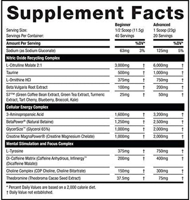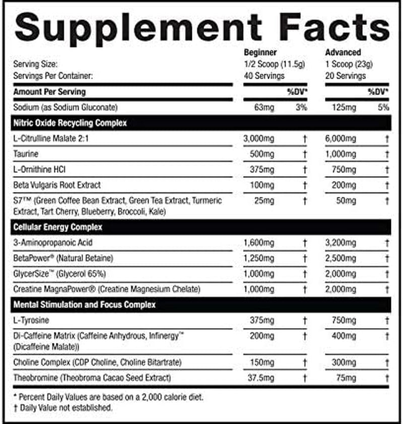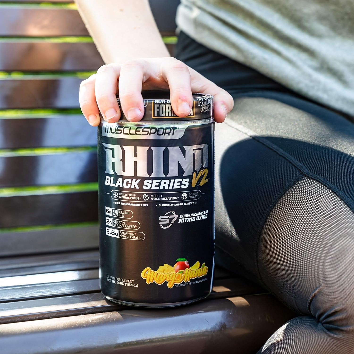 What’s the primary ingredient for everything you’ve ever wanted? Change. Perfection is an evolution, and just like the original Rhino BLACK, Rhino BLACK V2 is here to turn your workout intensity up past 100. With V2, the purpose of Rhino BLACK’s 3 complexes were maintained; they’re still the key to training session success – Pump, Cellular Energy, & Focus. Advancements in ingredient science have brought us to new heights. S7 is a cutting-edge ingredient capable of increasing nitric oxide levels 230%! GlycerSize pours fluid and nutrients into muscle cells for downright crazy pumps. BetaPOWER enhances exercise tolerance, driving more and more gains. Added Theobromine provides greater cognitive clarity for a stronger mind-muscle connection. Keep what works, and add what works better. Rhino BLACK V2 goes for the win, just like you.
