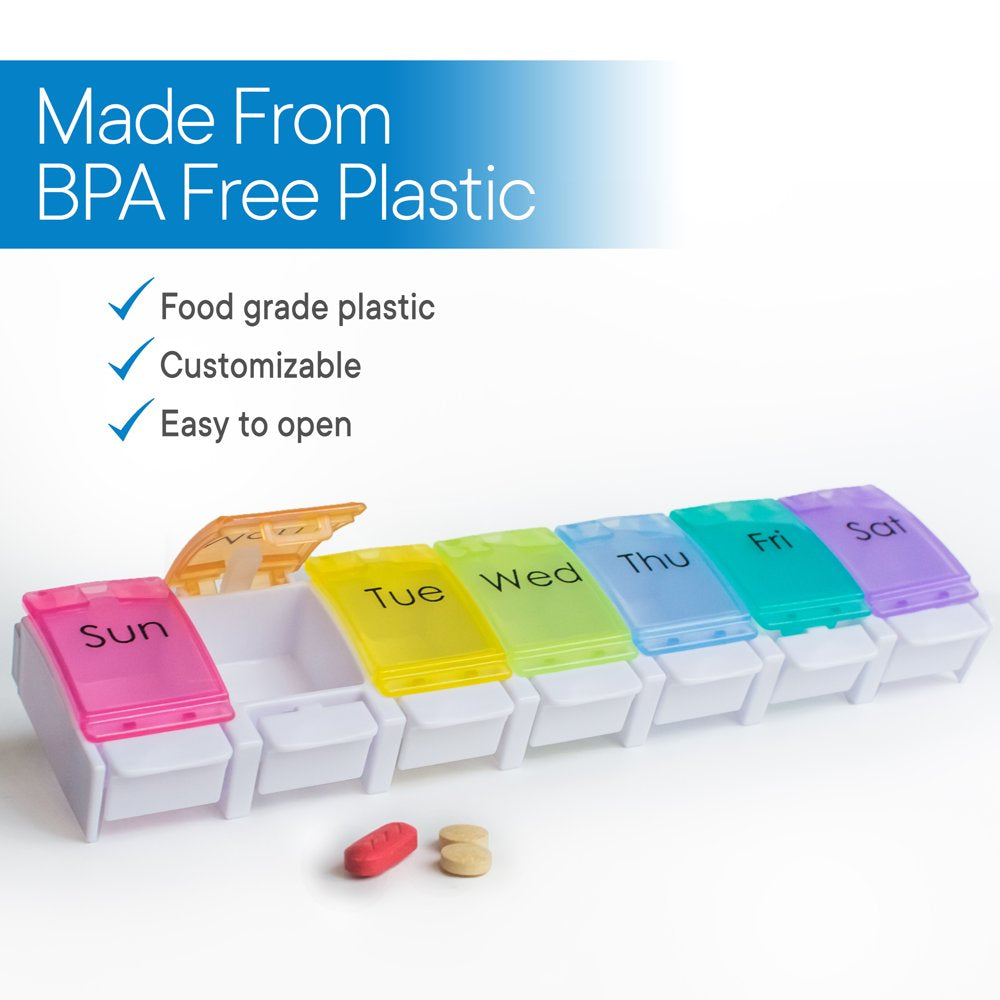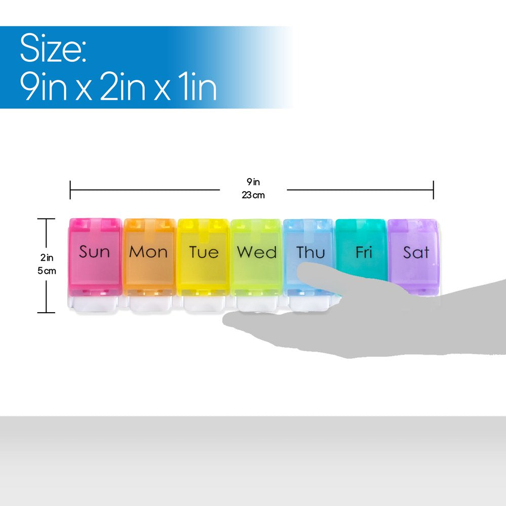 - COLOR CODED DAYS: Each day has a designated color to eliminate missed pills, so you can easily differentiate between the days. No need to just rely on text alone.