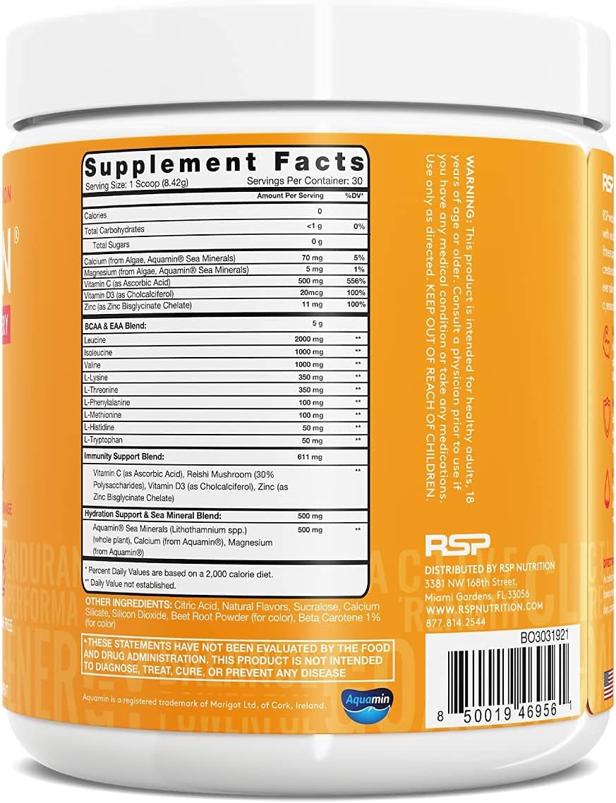 RSP NUTRITION Aminolean Pre Workout Energy (Fruit Punch 30 Servings) with Aminolean Recovery Post Workout Boost (Blood Orange 30 Servings)