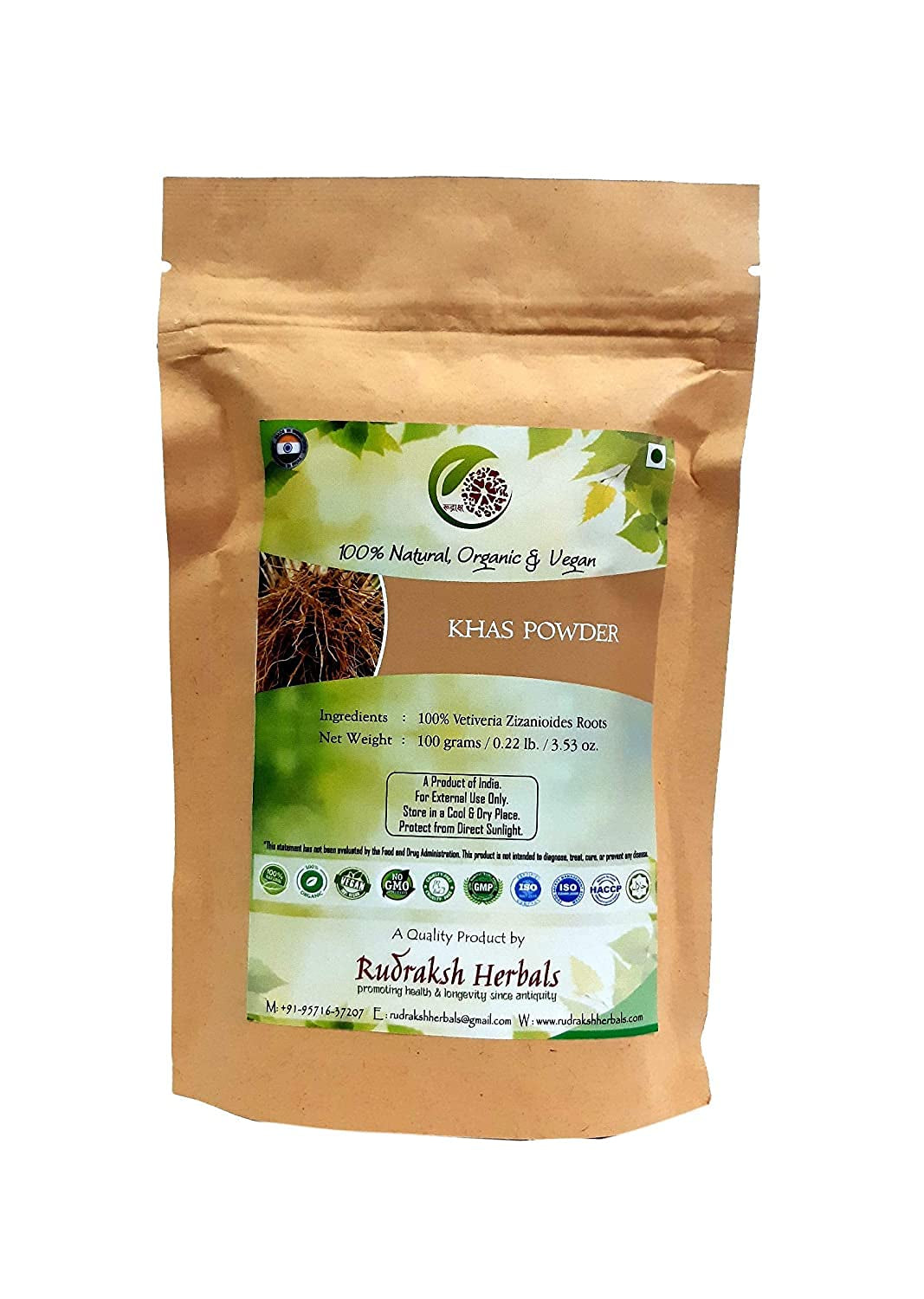 We are pleased to present you our Rudraksh Khas POWDER, which is 100% Pure, Authentic, Effective, Natural, Organic, Non-GMO, Vegan and Cruelty-Free. Our entire range of Plant-derived Herbal Cosmetics is formulated with Natural, Organic & Wild-crafted ingredients; no Synthetic Fragrances & Colouring Agents added. All of our products are GMO-, Gluten-, Paraben-, Silicone- & Sulfate-Free! Plus, we use Eco-Friendly & recyclable packaging materials.