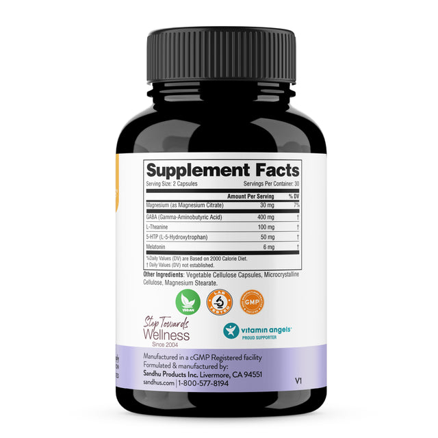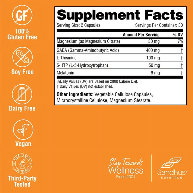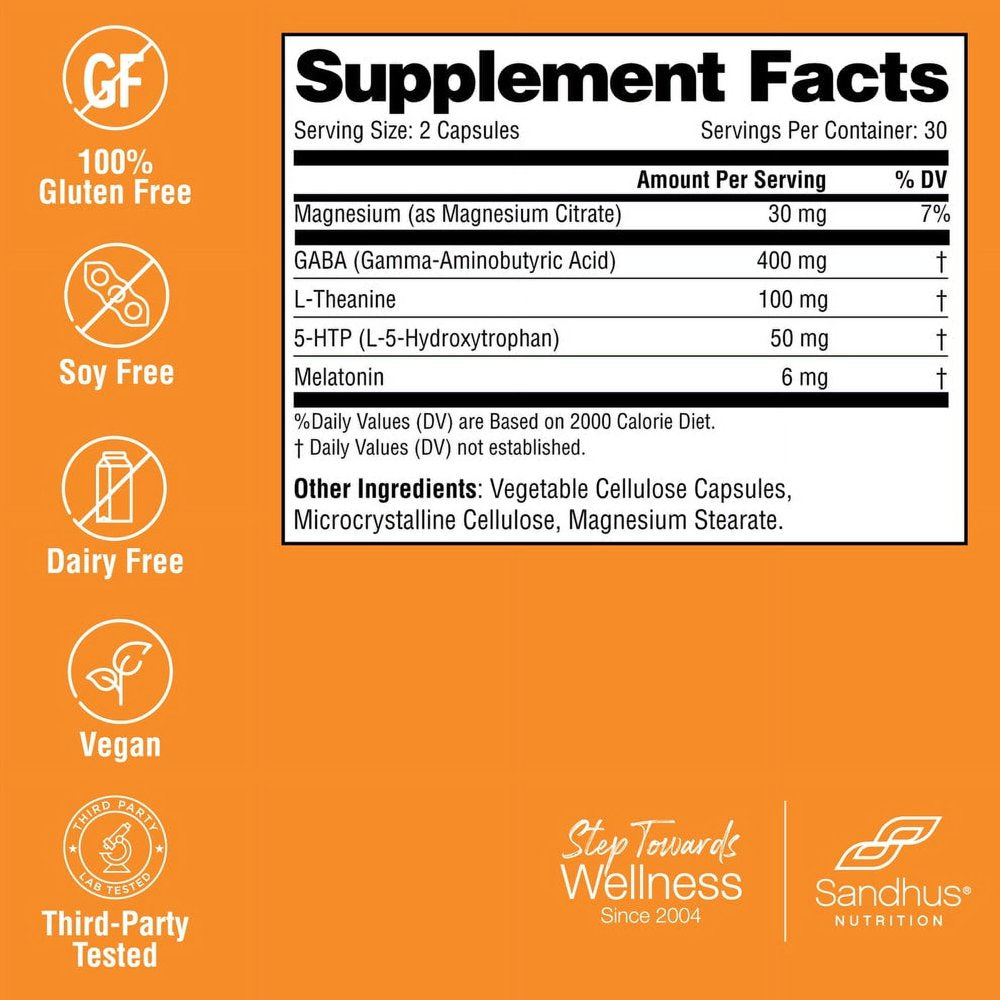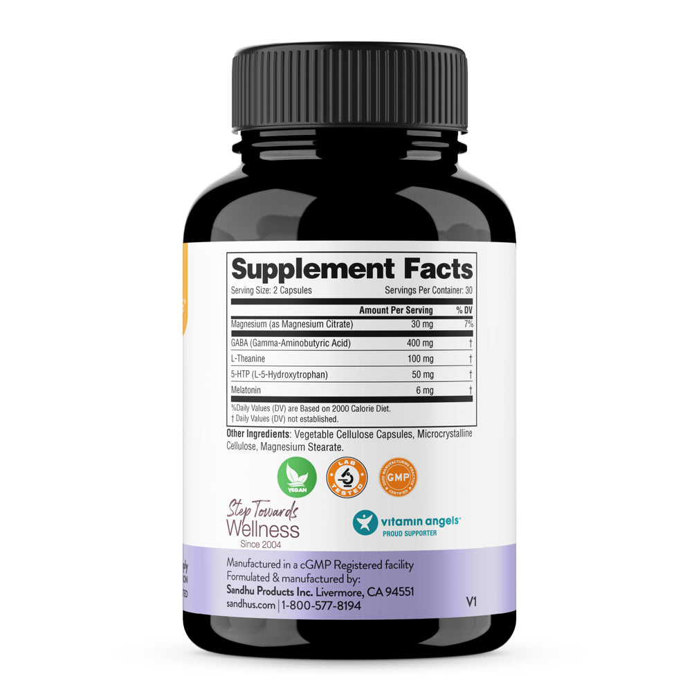 Sandhu'S Sleep Support Capsules, 6MG Melatonin With, GABA, L-Theanine, 5-HTP & Magnesium, 60 Counts