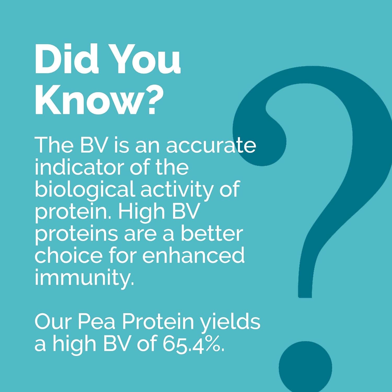 - Why Pea Protein: We chose Pea Protein because it is a plant-based, hypoallergenic protein that yields a high biological value (65.4%), an accurate indicator of the bio-activity of protein. High BV proteins are a better choice to promote lean muscle and overall health.