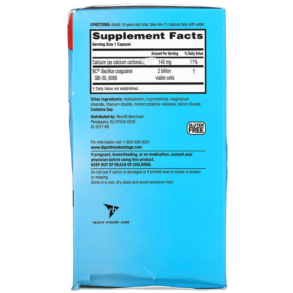 Only Digestive Advantage uses BC30, a unique patented probiotic. A natural protein shell protects our probiotic allowing it to survive stomach acid so more live good bacteria can get to your digestive tract and reach the intestines, where you need them most. Probiotics in your intestines promote a healthy digestive and immune system.