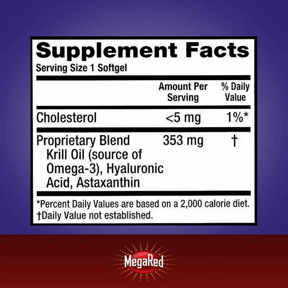 - MegaRed Superior Joint Care contains a proprietary formula that combines powerful omega�-3 krill oil with hyaluronic acid and astaxanthin