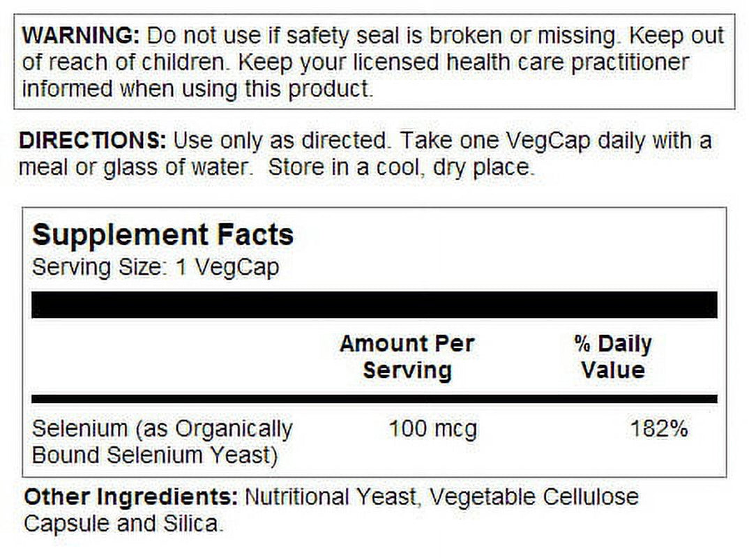 Selenium-100 by Solaray - 100 Capsules is backordered and will ship as soon as it is back in stock.