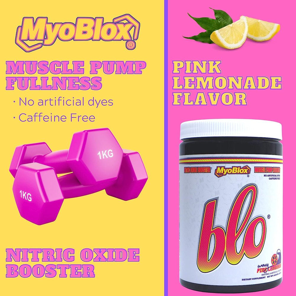 - Pure Pump Pre Workout - MyoBlox Blo pump supplement is designed to support mind-blowing pumps, vascularity, recovery, and gains. Do your workout sets with confidence with this wavy pink lemonade pre workout energy drink!