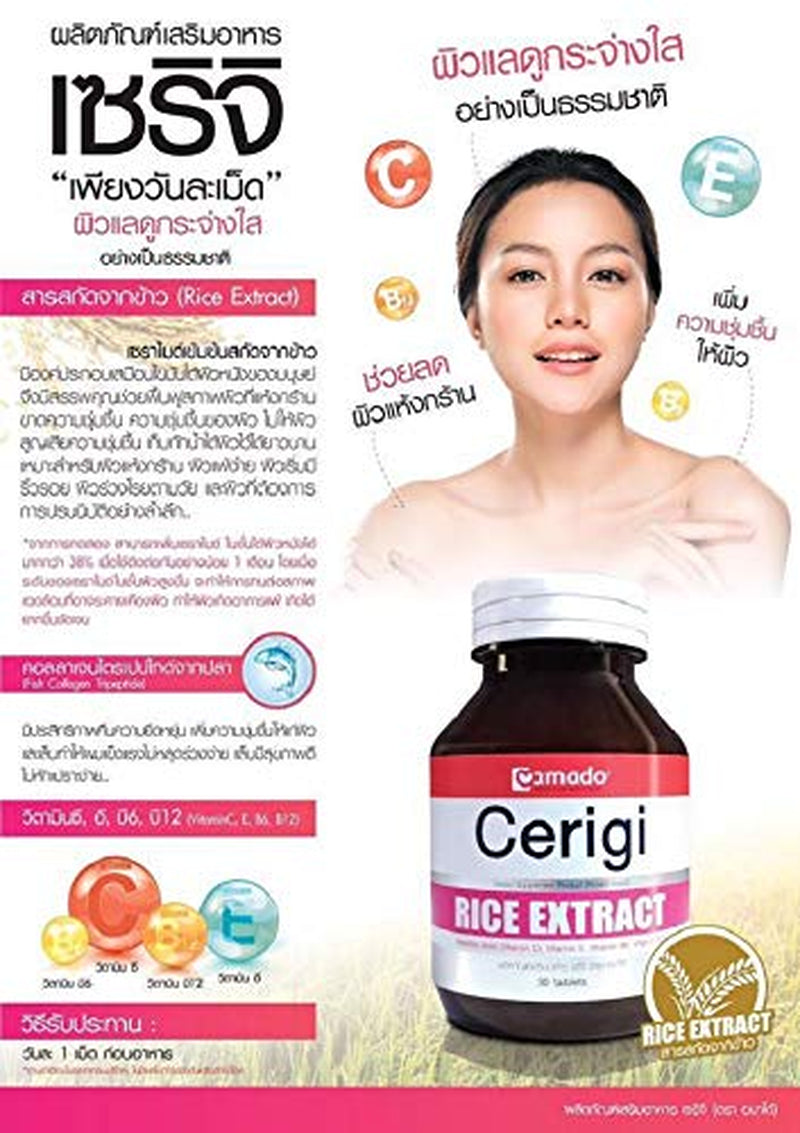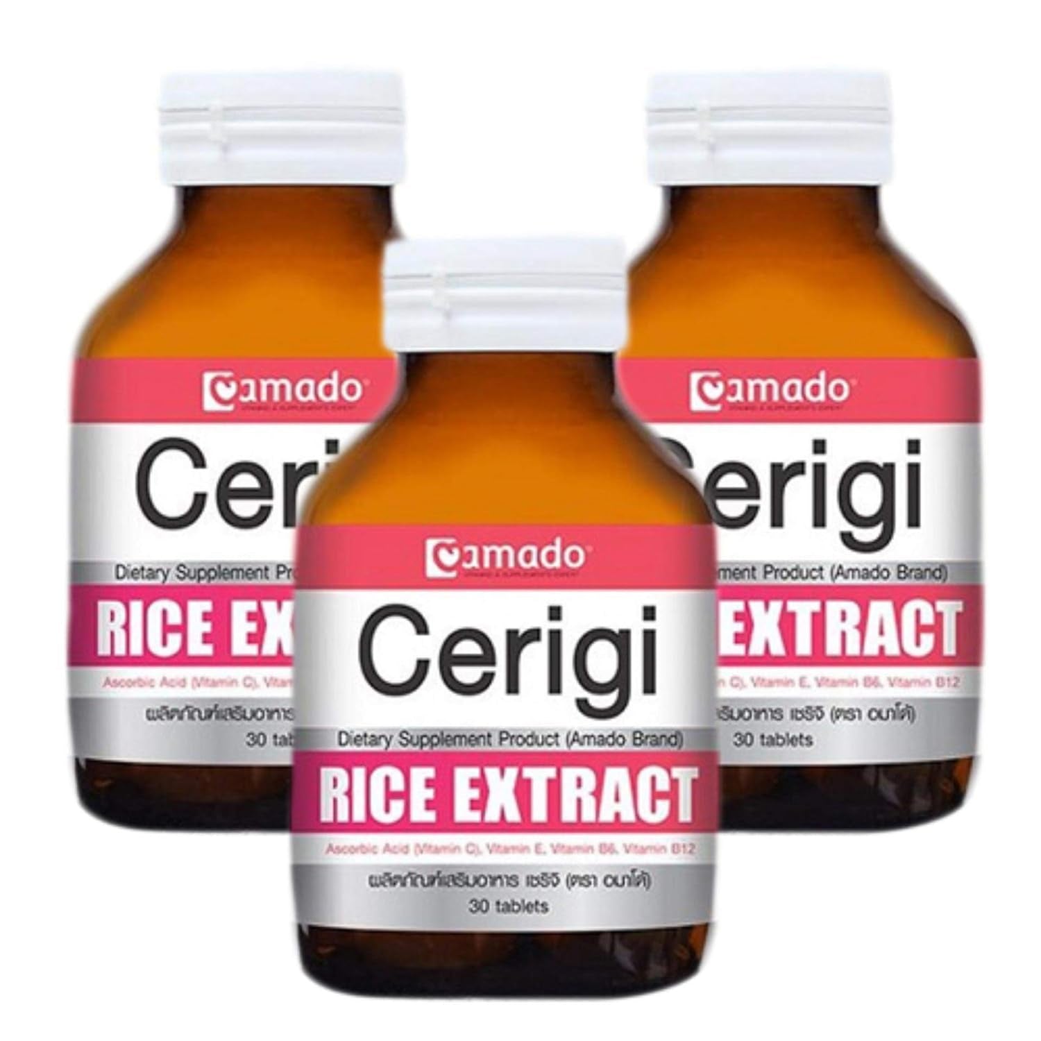 Set 3 Bottles.Amado Cerigi Rice Extract (30 Tablets X 1 Bottle) Smooth, Clear, without Acne, Freckles, Dark Spots, Rejuvenation