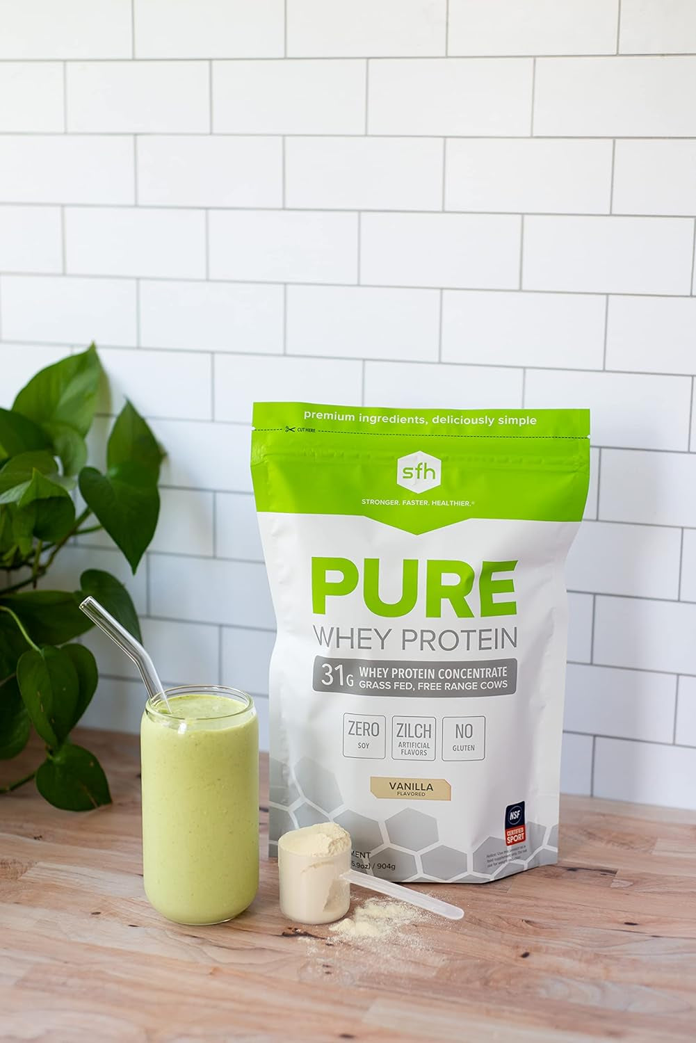 • CLEANEST WHEY ON THE MARKET: Our proteins hydrate well in water and are absorbed very well by your body (easier to absorb than whey protein isolates). SFH PURE Whey has low lactose content; is low in cholesterol; and high in free calcium. It is a rich source of the essential amino acids needed on a daily basis by the body.