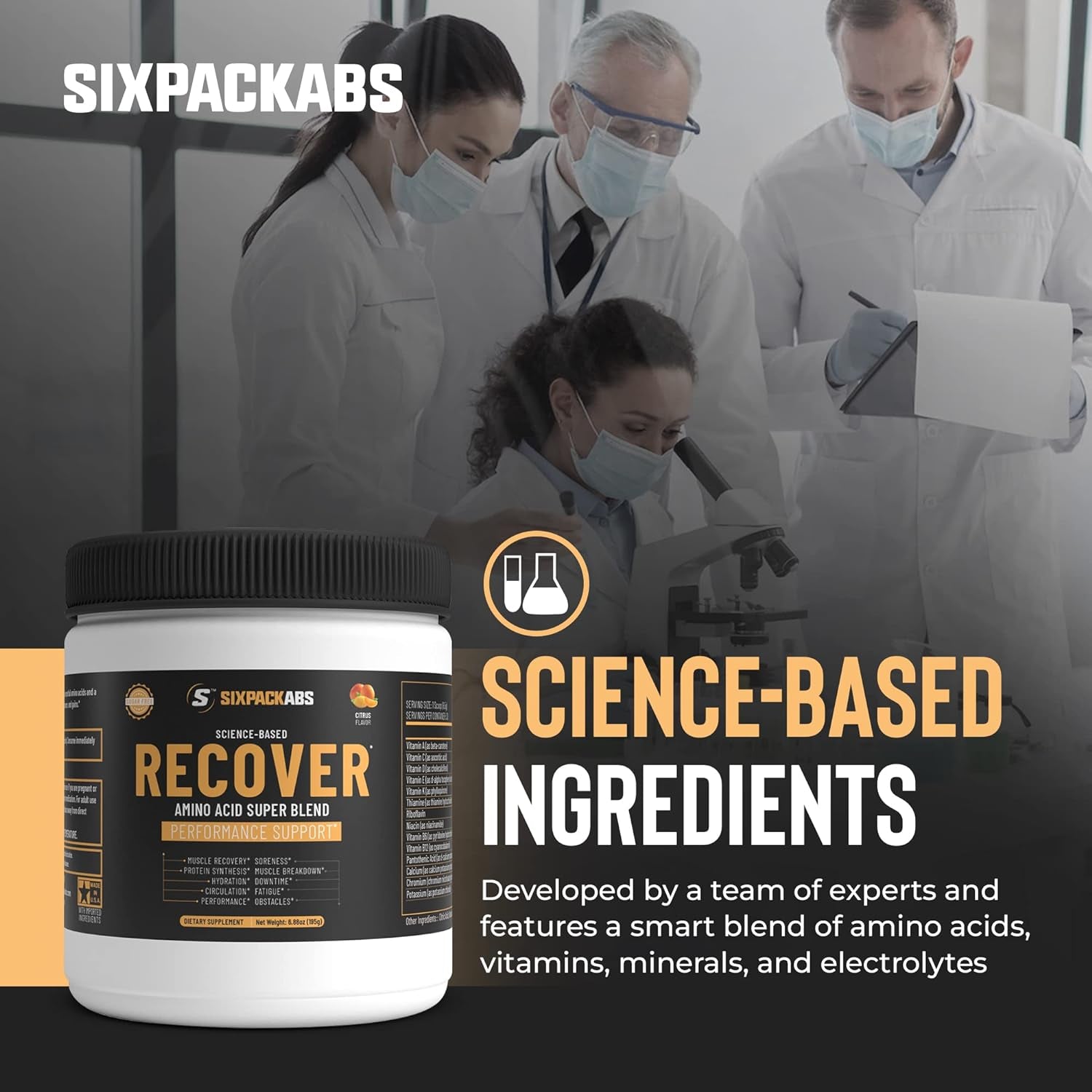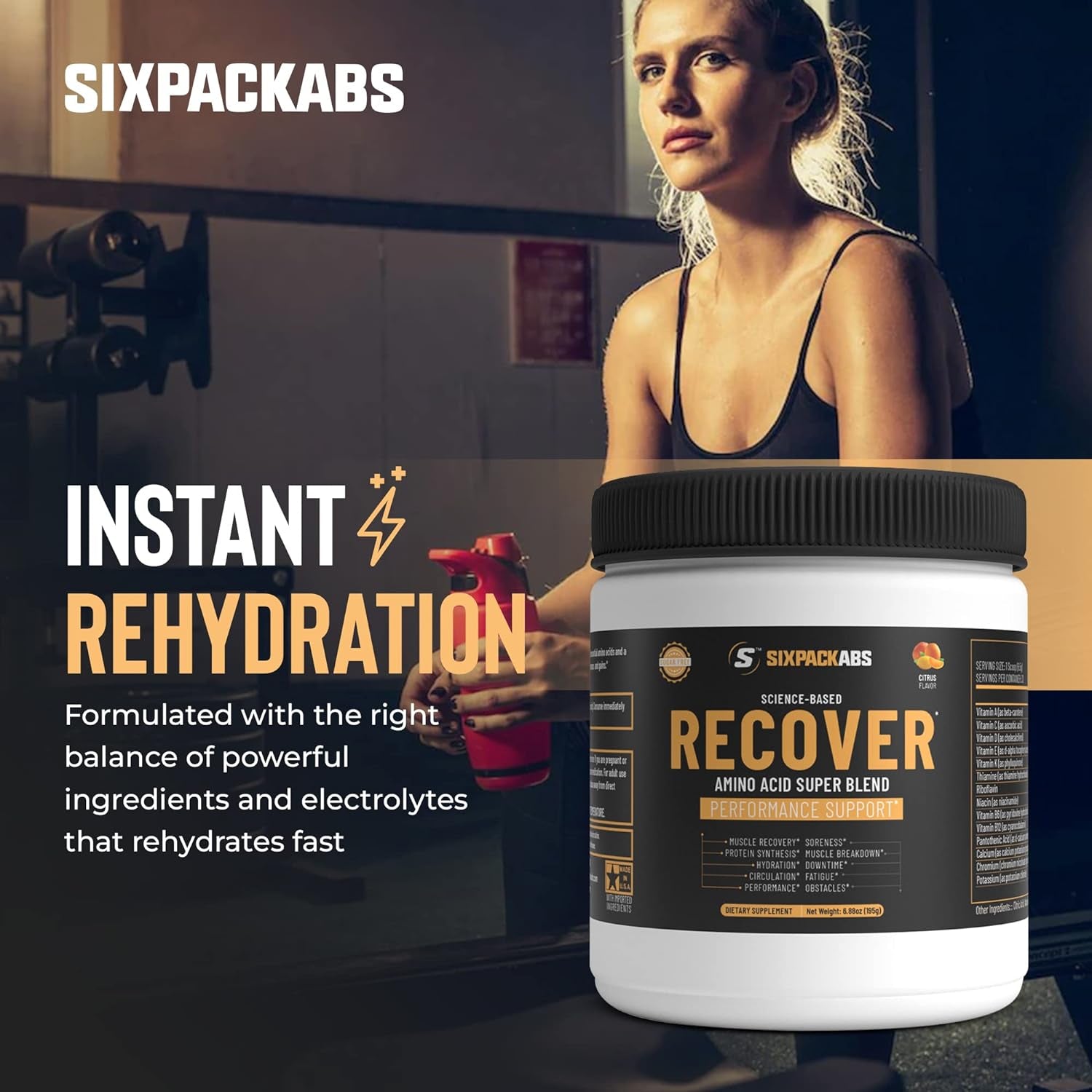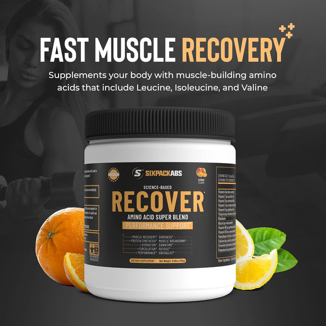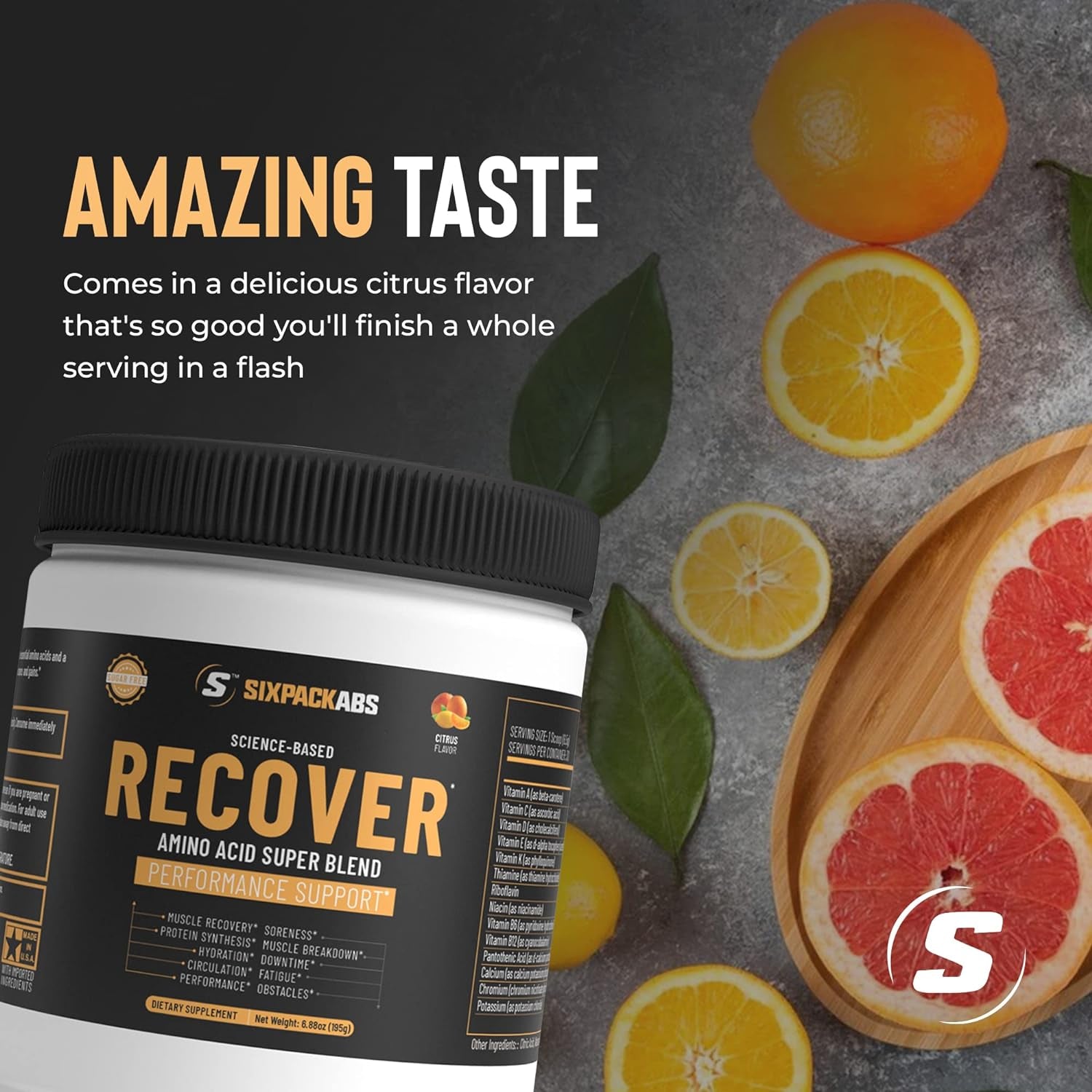 Sixpack Abs Recover Post-Workout Powder, Science-Based Muscle Recovery Drink Supplement for Working Out, Citrus Flavor