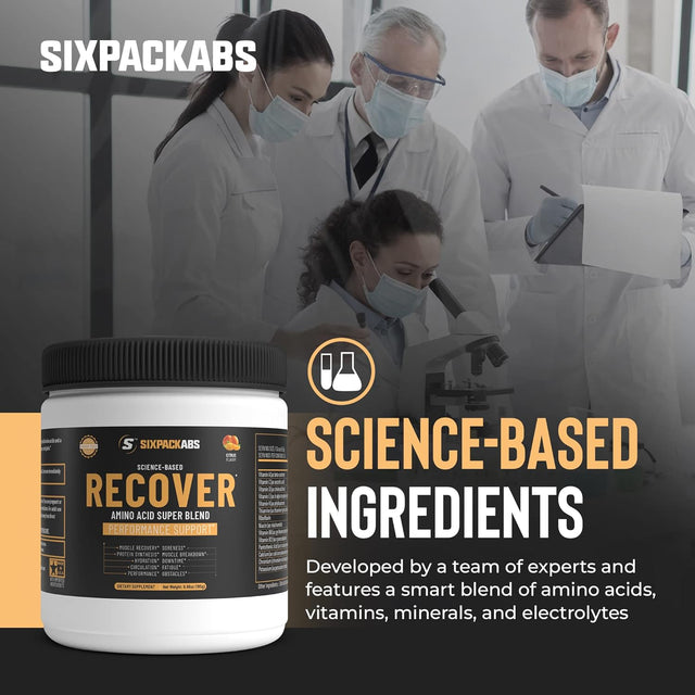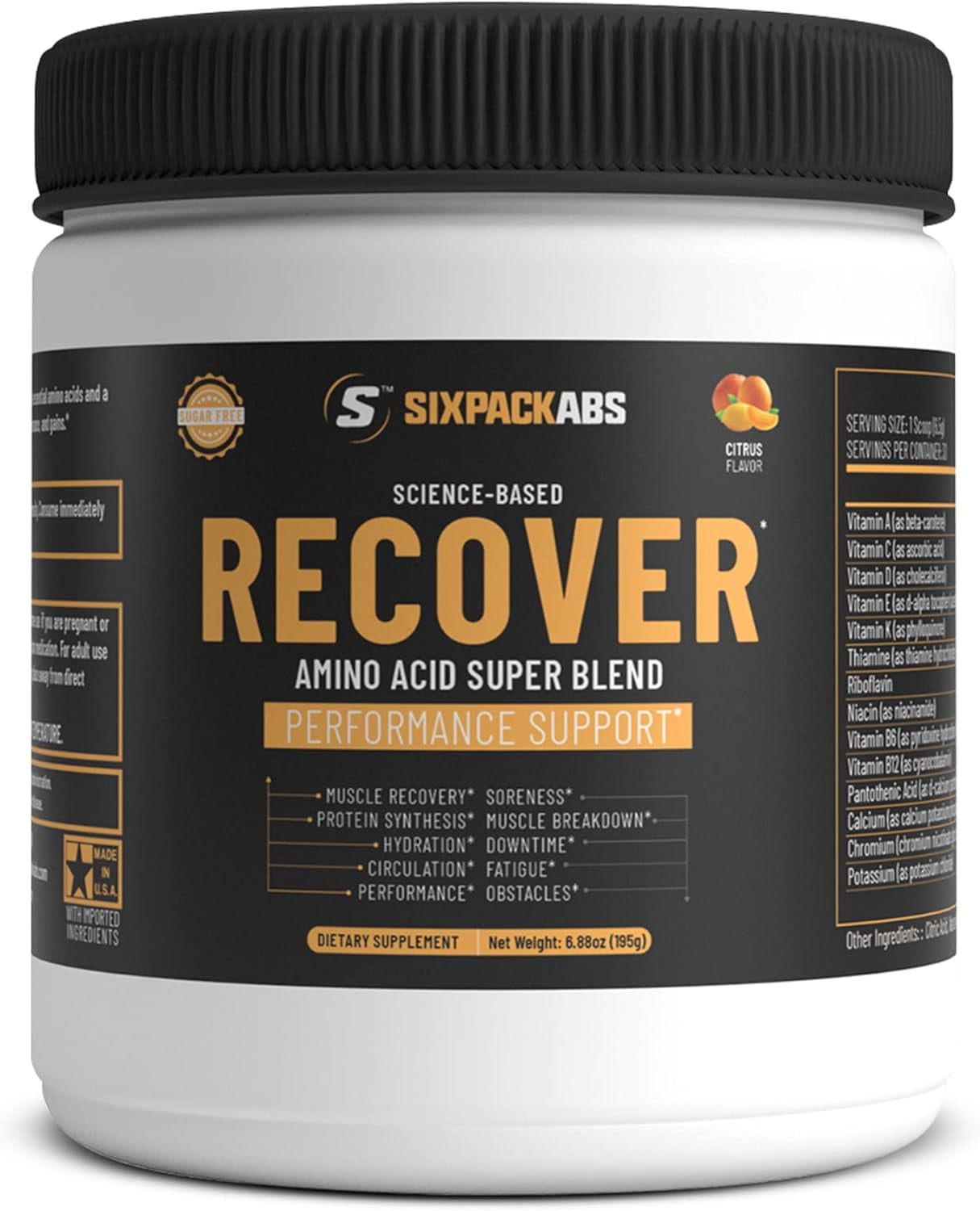 Wish you had post-workout amino acid supplements to support your recovery? After any workout, it is important to initiate replenishment and recovery of your muscles. Sixpack Abs Science-Based Recover is a post-workout supplement formulated to provide your body with essential amino acids, vitamins, minerals, and electrolytes to ensure this important function and deliver results. Amino acids, when ingested properly and consistently, can expedite the process of muscle protein synthesis, which drives muscle strength and size increase. Our muscle sports recovery drink also helps reduce soreness and prevent muscle breakdown, so you can perform your best, recover quickly, and get back in the gym!