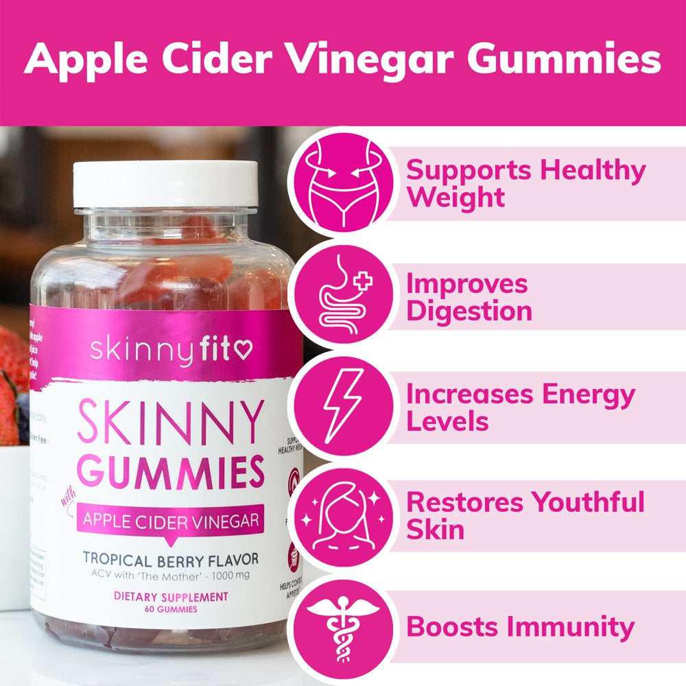 Skinnyfit Skinny Gummies - Apple Cider Vinegar Gummies Dietary Supplement, 60 Count is backordered and will ship as soon as it is back in stock.