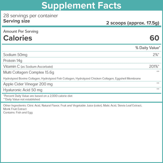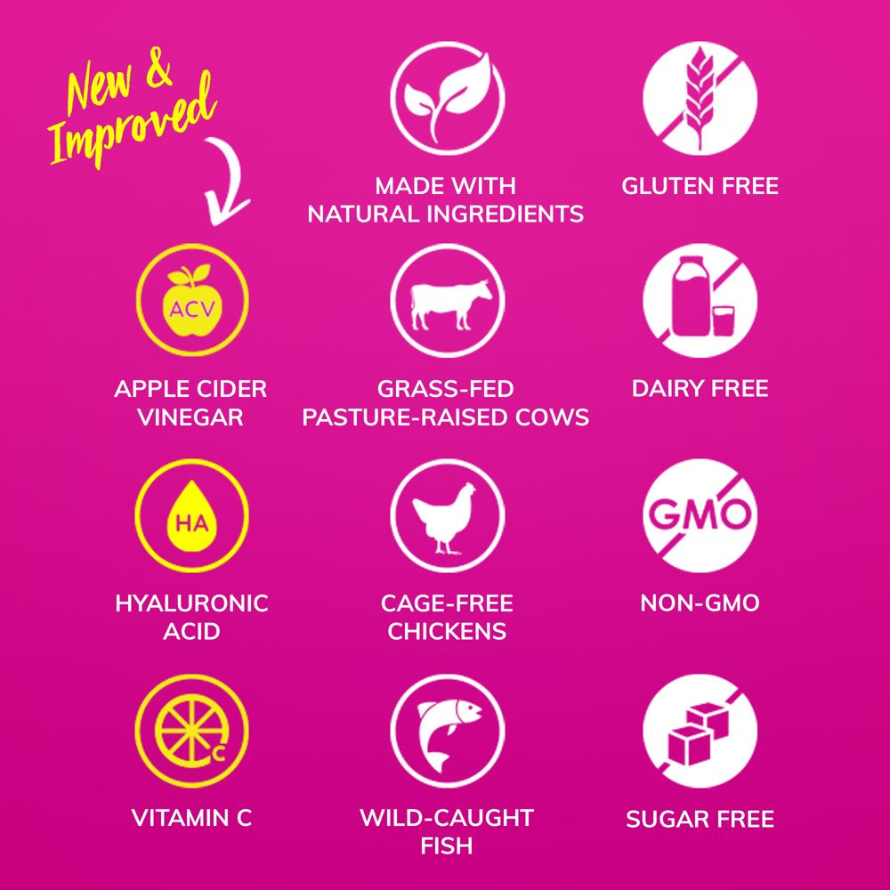 • HEALTHY SKIN, HEALTHY WEIGHT. Collagen and hyaluronic acid has shown an increase in skin elasticity and hydration, and supports cell regeneration, which supports youthful-looking skin. Apple cider vinegar supports a healthy metabolism and can aid in fat burn to help promote a healthy weight.