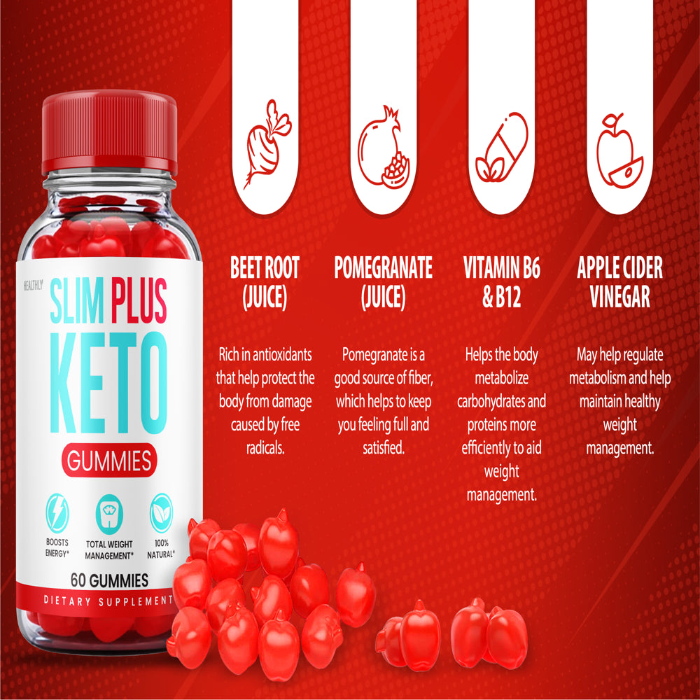 Brand: Healthly Flavor: Slim Plus Gummies Unit Count: 60.00 Count Item Form: Gummy Product Benefits: Slim Plus Gummies Age Range (Description): Adult Package Information: Bottle Number of Items: 1 Dosage Form: Gummy Material Feature: Slim Plus Gummies