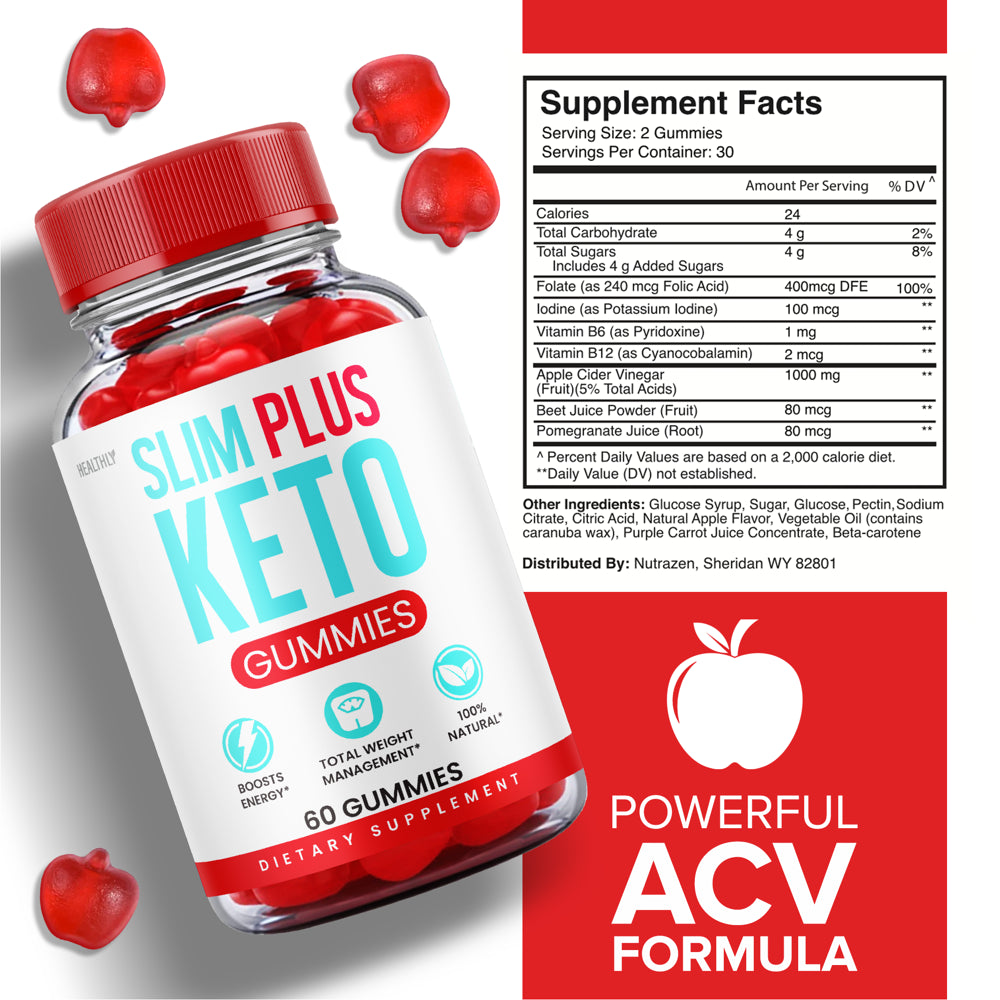 Slim plus Keto Gummies for Weight Loss ACV Apple Cider Vinegar 100% Natural (60 Gummies)