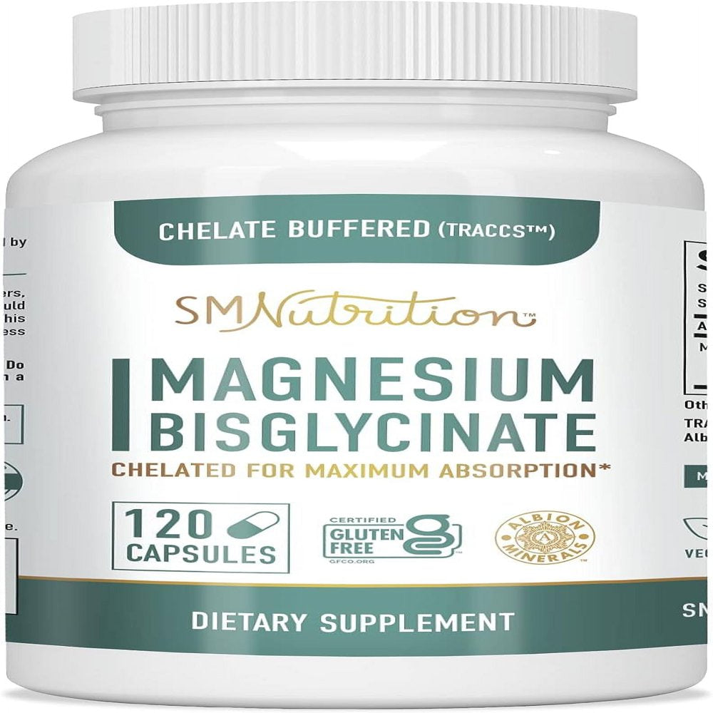 SM Nutrition Chelated Magnesium Glycinate |For Sleep Support Muscle Cramps & Bone Health | 120 Ct