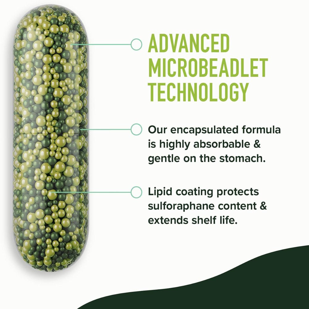 This powerful formula has everything you need in just 2 capsules per day, and every bottle contains a 30-day supply! The microbeadlets’ special lipid coating protects your Sulforaphane content from oxygen and moisture to extend shelf life and ensure maximum value in every capsule.Our Story