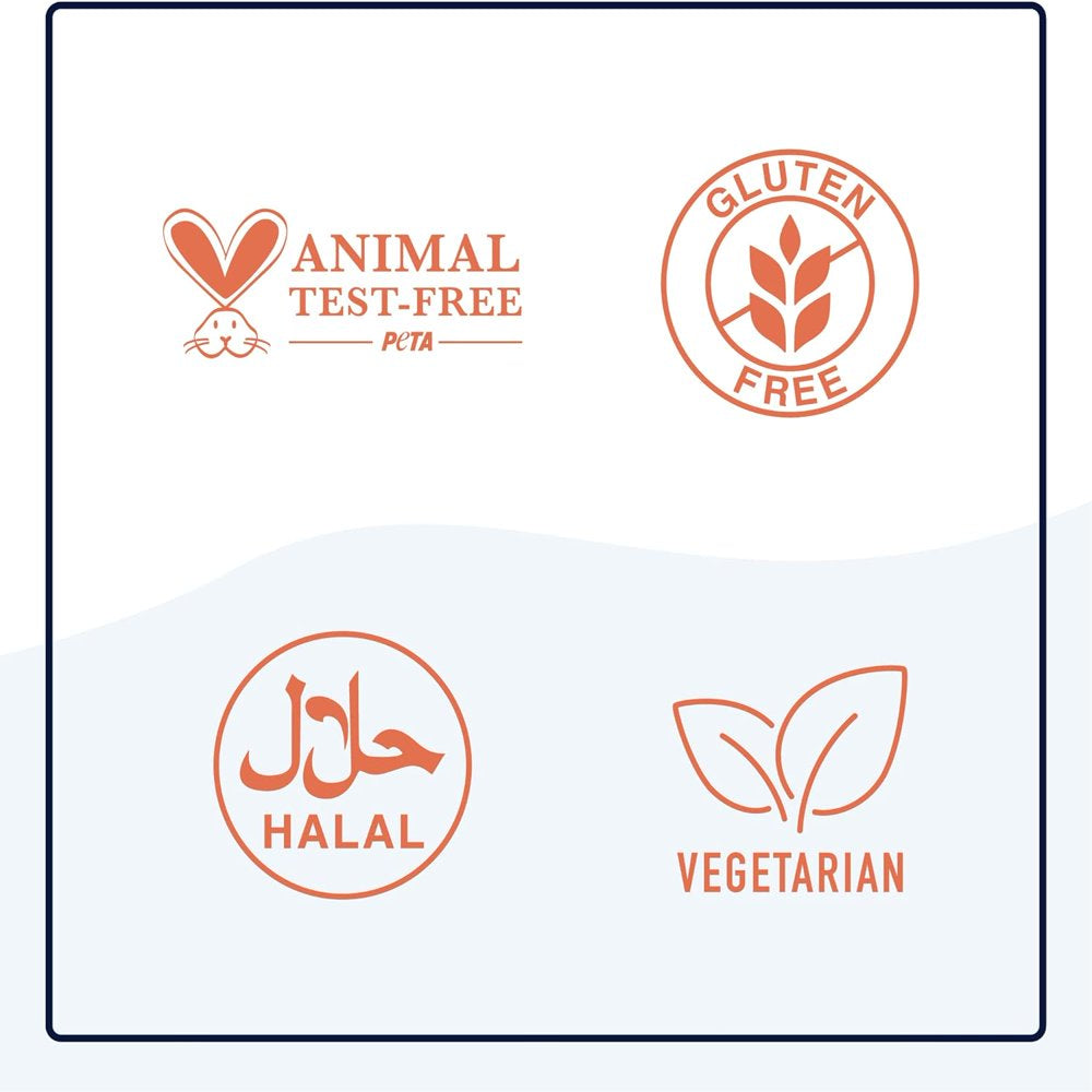 - Gluten-Free, PETA.org Certified, Halal Certified, 3rd-Party Tested