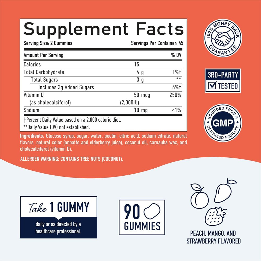 - Vitamin D 2000 IU bone health, mood, and immunity gummies for adults