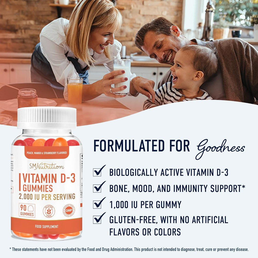 SM Nutrition Vitamin D3 2000 IU Gummies | Bone, Mood, and Immunity Support | 90 Gummies