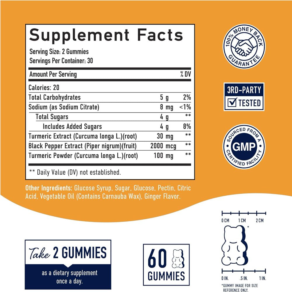 Smnutrition Turmeric Curcumin Gummies | Turmeric Gummies with Ginger and Black Pepper for Better Absorption, 60Ct