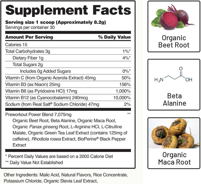 Snap Supplements Preworkout Beet Root Powder, Nitric Oxide Pre Workout with Organic Beets, 250G (30 Servings)