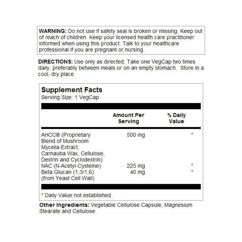 Solaray AHCC + NAC & Beta Glucan, Veg Cap (Btl-Plastic) | 30Ct is backordered and will ship as soon as it is back in stock.