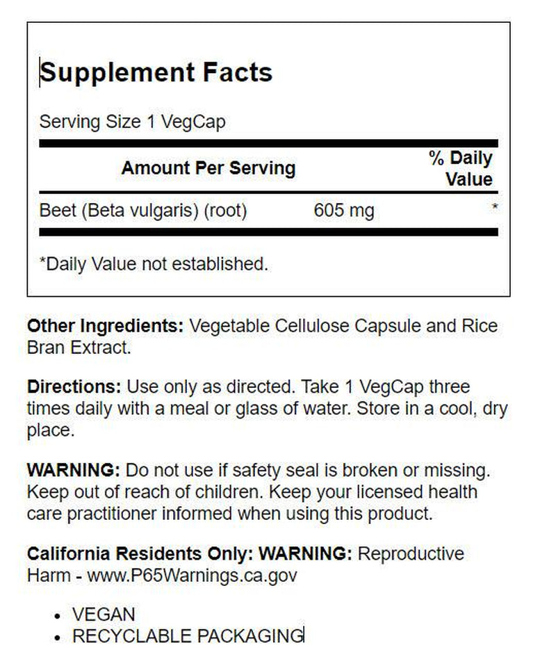 | Product Name | Solaray Beet Root 605mg | May Support Cardiovascular Health & Athletic Performance, Kidney, Liver & Blood Health | Non-GMO | Vegan | 100 VegCaps |