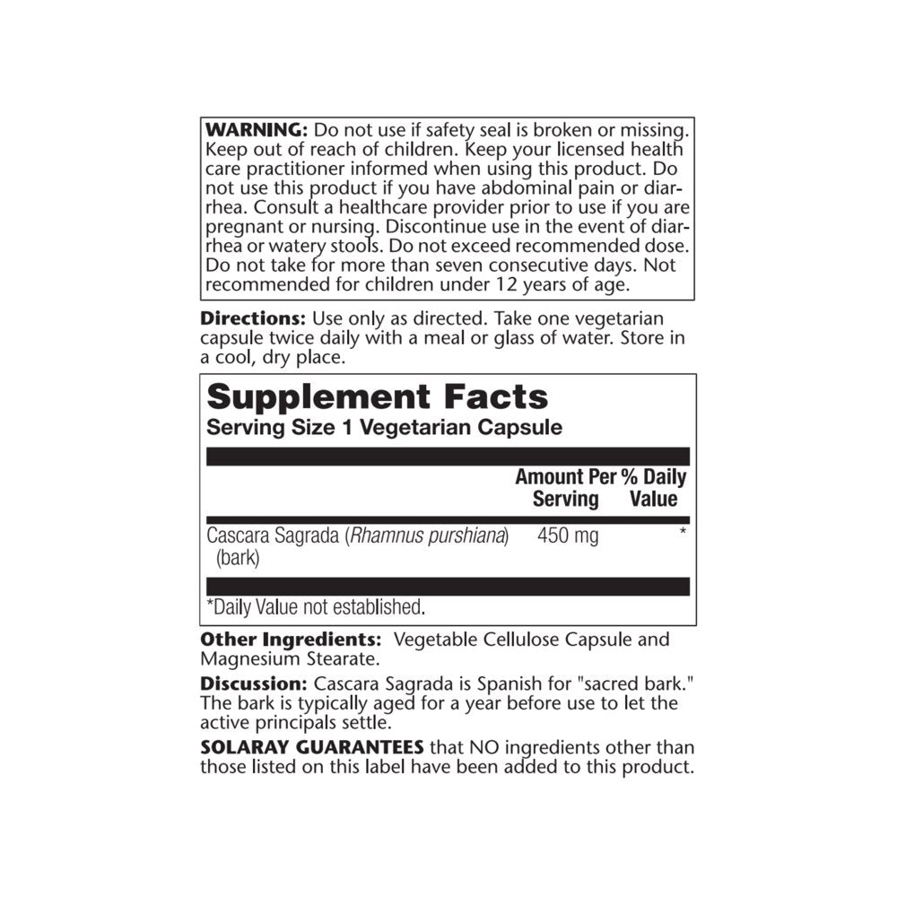 | Product Name | Solaray Cascara Sagrada Capsules, 450 mg, 180 Count |