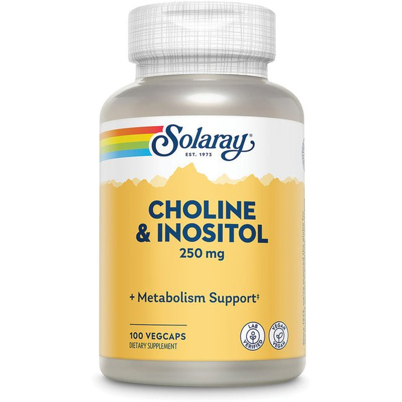 Solaray Choline & Inositol 250 Mg | Two-Nutrient Combo for Healthy Fat Metabolism, Brain Function Support | 100 Vegcaps