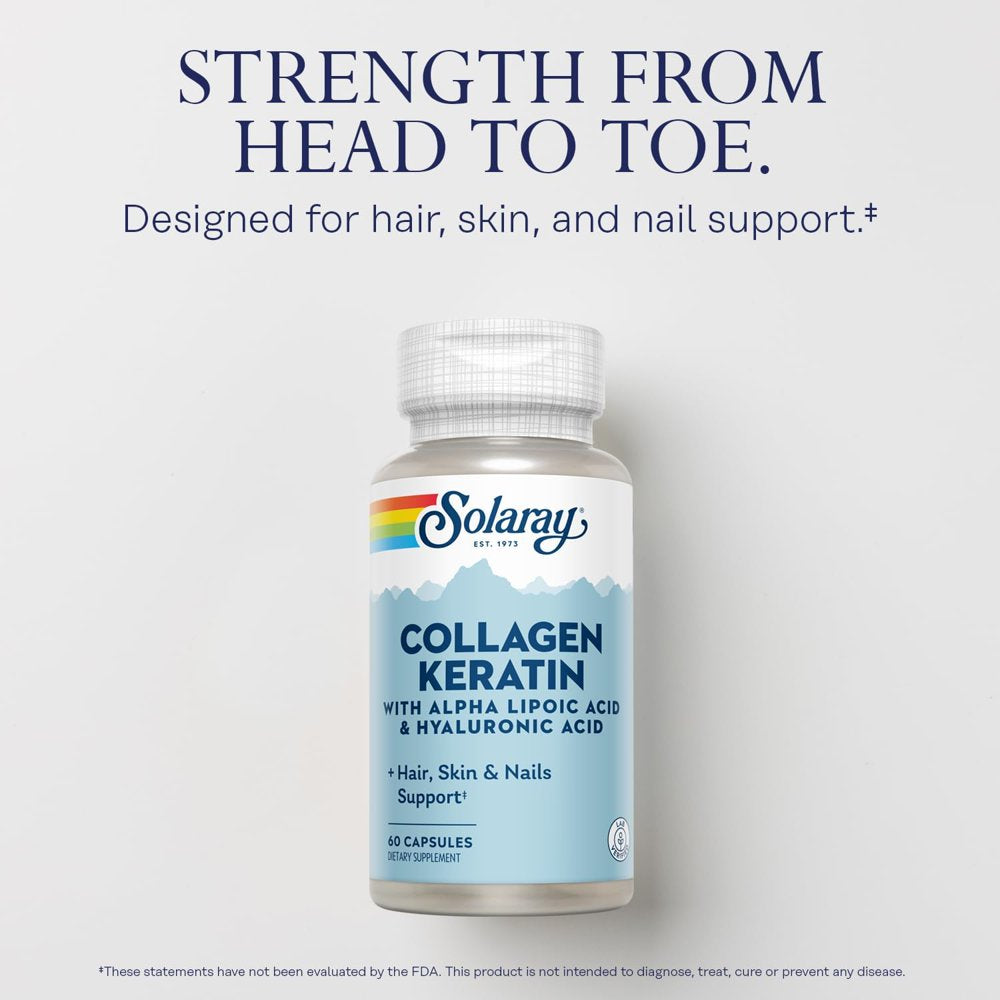 SOLARAY Collagen Keratin with Alpha Lipoic Acid and Hyaluronic Acid - Type I, II and III Collagen Pills - Hair, Skin, Nails, and Joint Health Support - 30 Servings, 60 Capsules