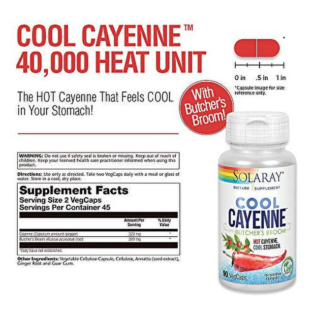 | Product Name | Solaray Cool Cayenne Pepper 40,000 HU with Butchers Broom for Healthy Circulation Support | 90 VegCaps |