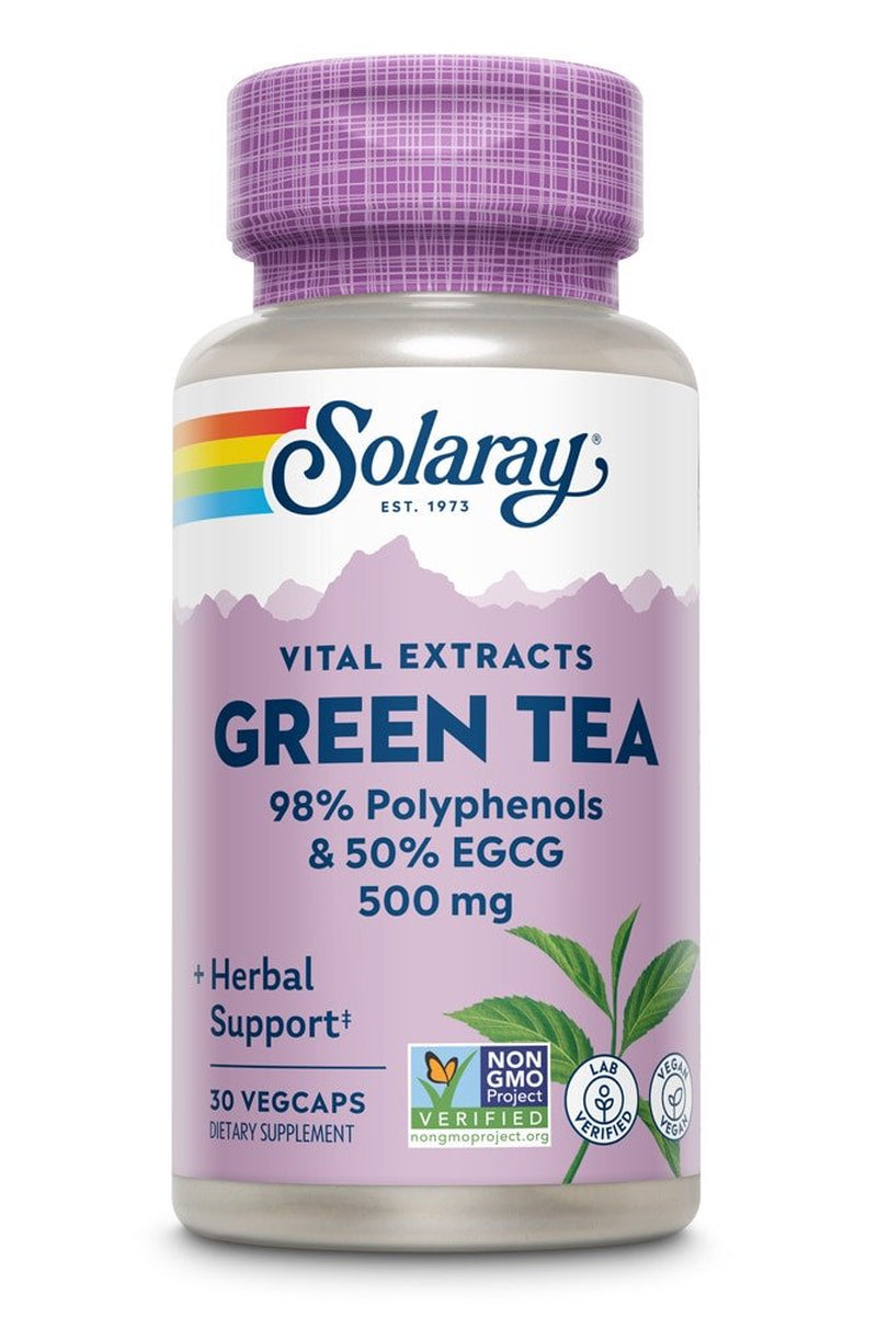 Native to China, green tea has been used for thousands of years, primarily as a beverage. Green tea contains many naturally occurring phytonutrients that are beneficial to human health, including several polyphenols such as flavonoids and catechins. The unique processing of green tea extract retains many of the active properties of the fresh leaf. Solaray Green Tea Extract is decaffeinated.