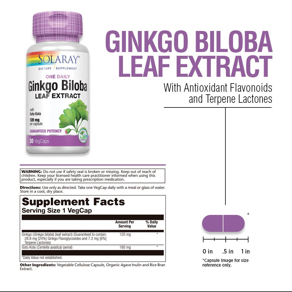 | Product Name | Solaray Guaranteed Potency Ginkgo Biloba Leaf Extract One Daily, Veg Cap (Btl-Plastic) 120mg | 30ct |