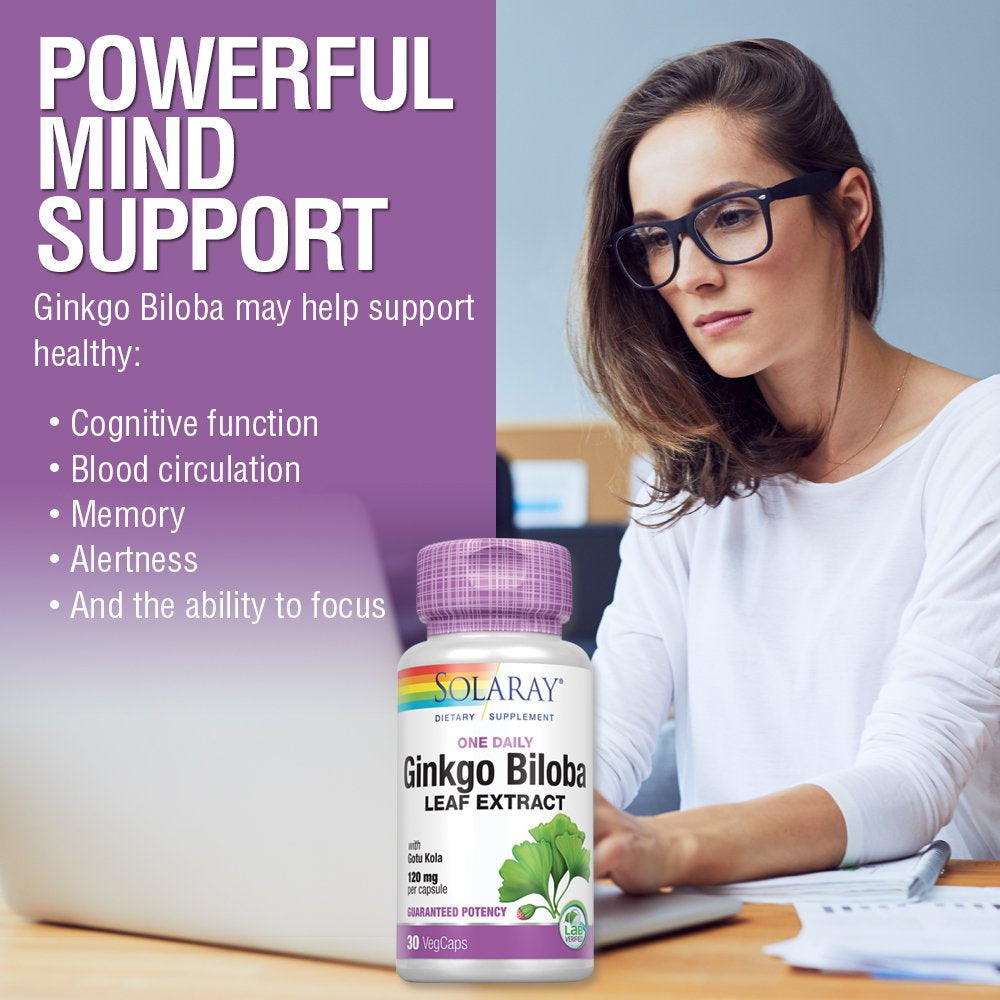 Solaray Guaranteed Potency Ginkgo Biloba Leaf Extract One Daily, Veg Cap (Btl-Plastic) 120Mg | 30Ct