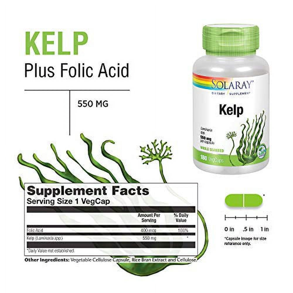 If you want to feel energized and well so you can live your best life, healthy thyroid function is key! A large seaweed that grows in cold, coastal ocean water, kelp is considered a superfood that helps support your thyroid. Thats why Solaray offers our powerful Kelp 550 mg supplement, featuring real kelp responsibly harvested from the wild and folic acid.
