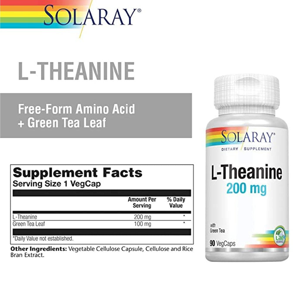 Solaray L-Theanine - 90 Vegcaps - 200 Mg + 100 Mg Green Tea Leaf