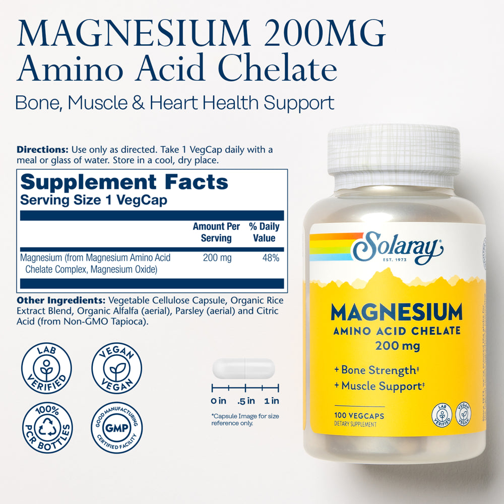Solaray Magnesium Amino Acid Chelate, Healthy Bone Strength, Muscle, Nerve & Cardiovascular Support, 100 Vegcaps