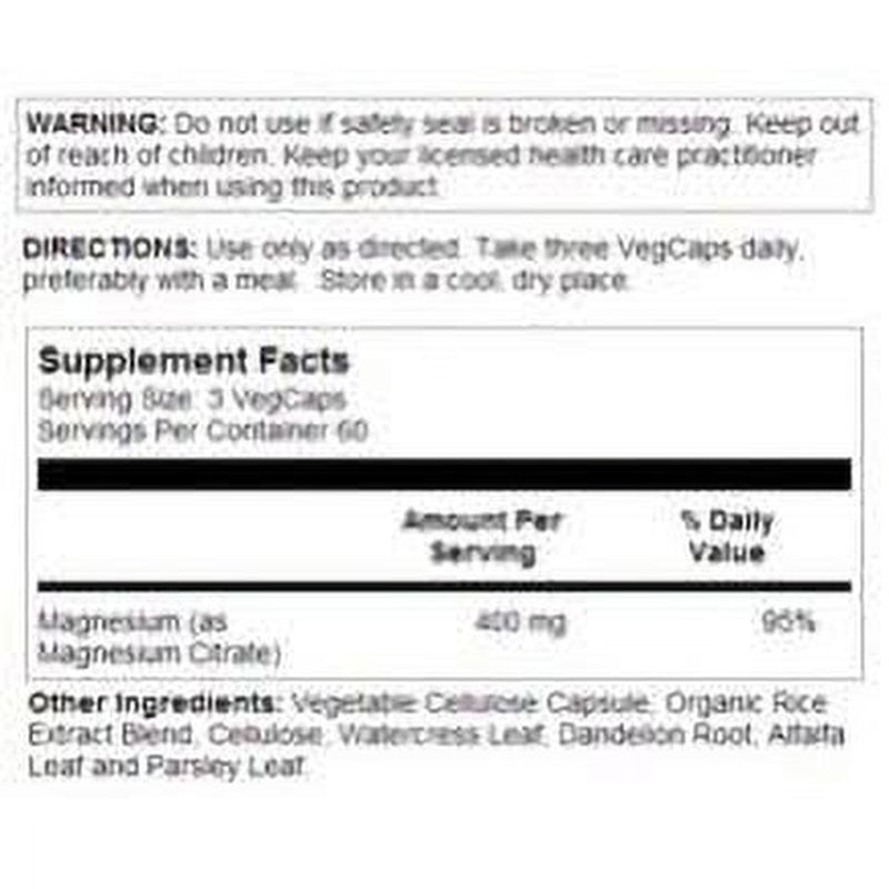 Solaray Magnesium Citrate, Veg Cap (Btl-Plastic) 400Mg 90Ct