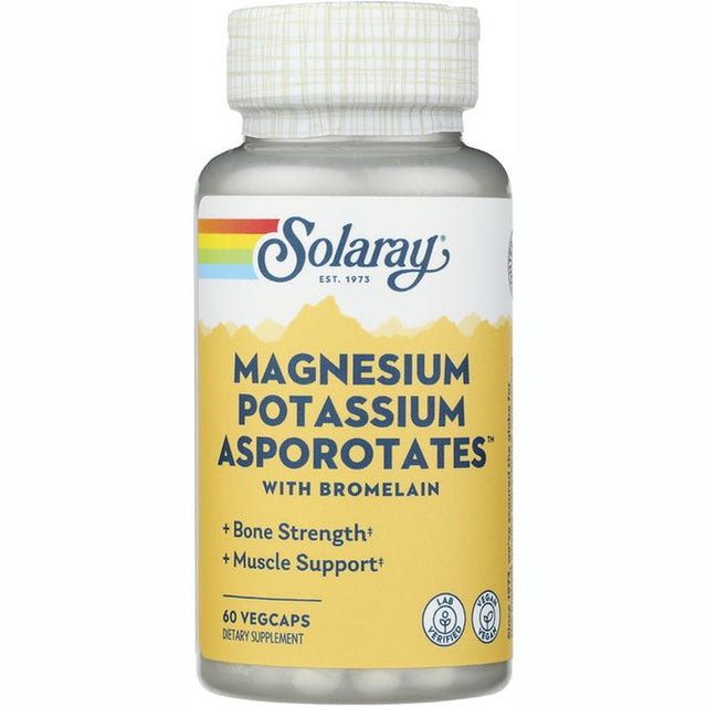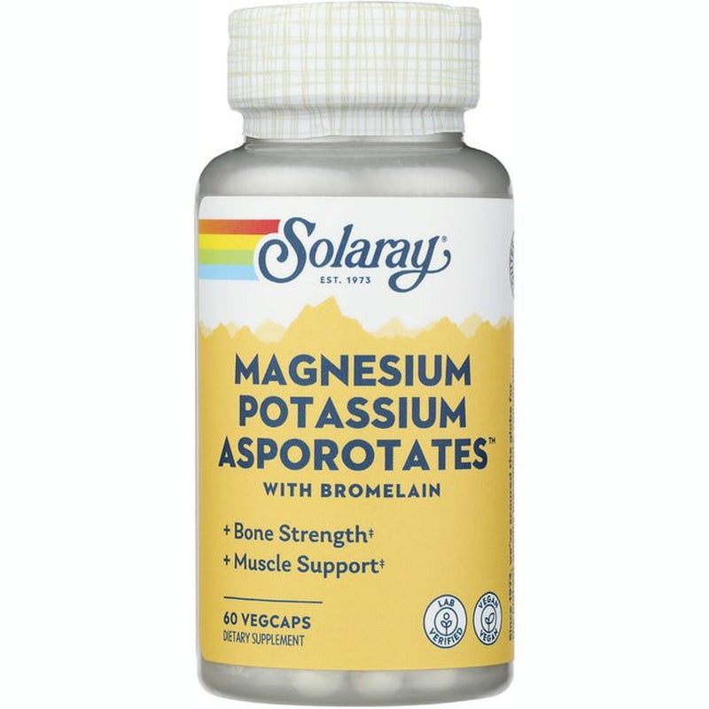 Solaray Magnesium & Potassium Asporotates W/ Bromelain, Healthy Electrolyte, Bone & Muscle Support, 30 Serv, 60 Vegcaps