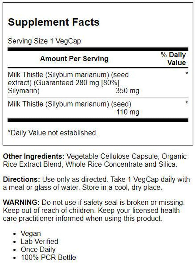 Solaray Milk Thistle Seed Extract One Daily 350Mg | Antioxidant Intended to Help Support a Normal, Healthy Liver | Non-Gmo & Vegan