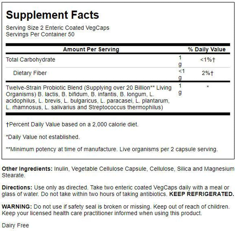 Solaray Multidophilus 12 Strain Probiotic | 20 Billion CFU | Healthy Gut Support | 50 Servings | 100 Enteric Vegcaps