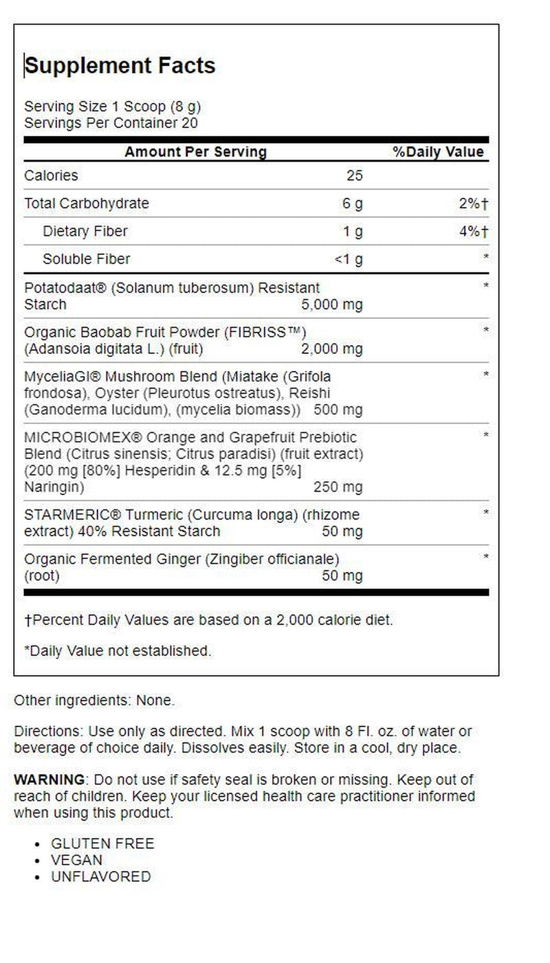 - Innovative Formula - Mycrobiome Prebiotic with resistant starch is a digestion supplement designed to support colon health, digestive health, and a healthy gut barrier.