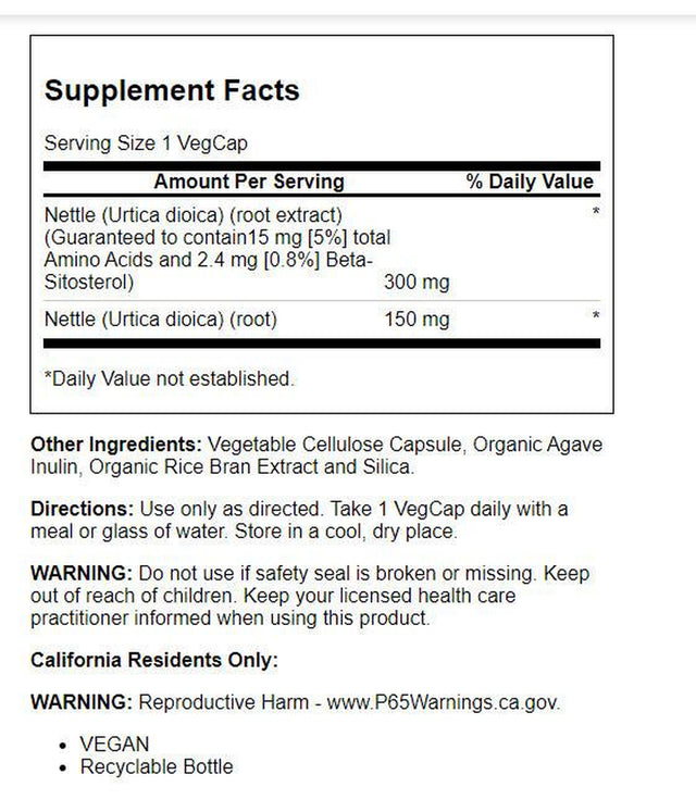 | Product Name | Solaray Nettle Extract 300 mg, Healthy Urinary & Prostate Support for Men, W/ Amino Acids & Beta-Sitosterol, 60 VegCaps |