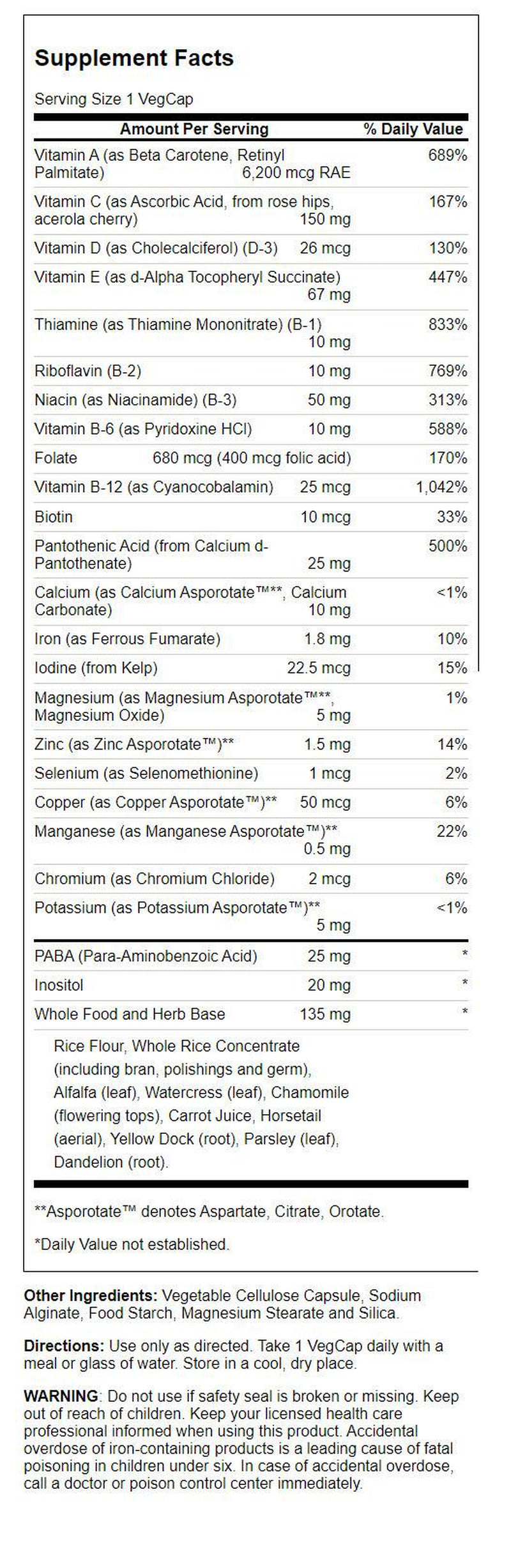 Once Daily High Energy Multi-Vita-Min comes in easy-to-swallow vegetarian capsules, perfect to take with breakfast, lunch or dinner. These capsules are scientifically blended and lab verified for purity, potency and identity. Each ingredient has been inspected in a state-of-the-art laboratory, and tested for contaminants. You can rest assured every batch meets the highest-quality standard because you deserve the best.